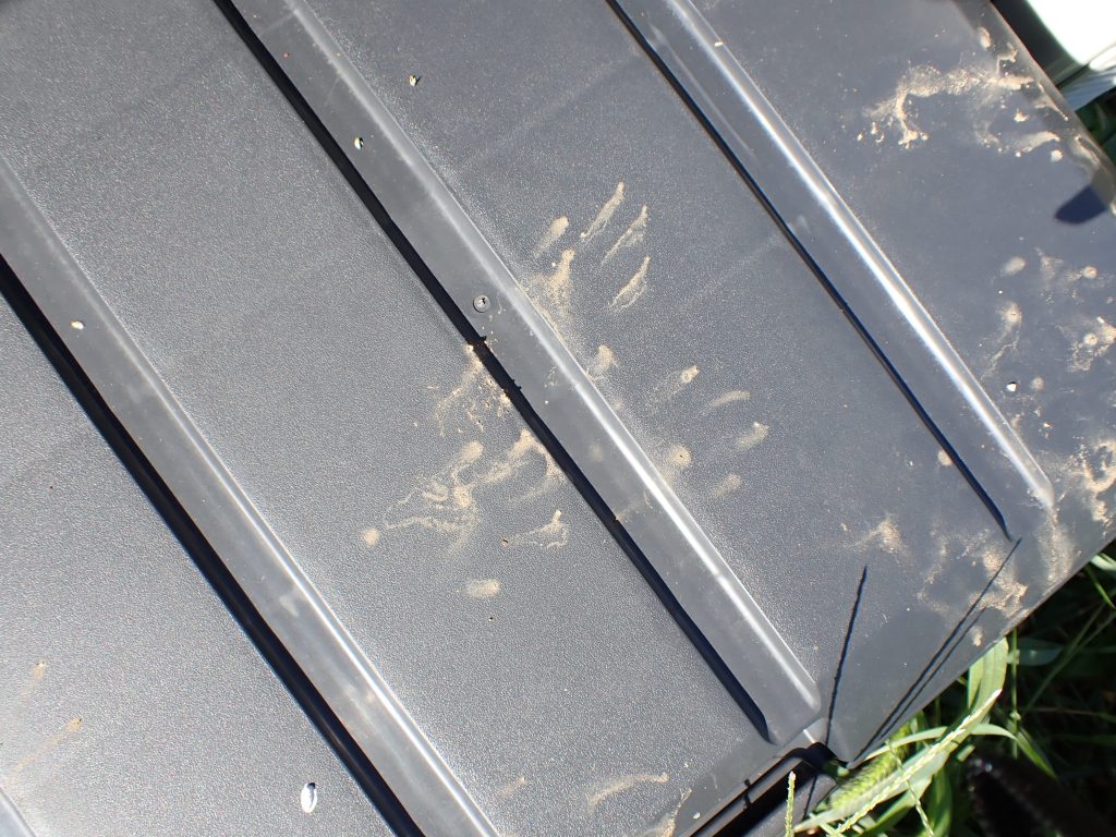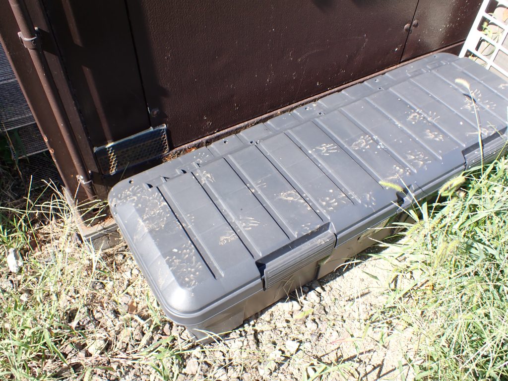 ここのところ久しく見ていなかったが,外のコンテナに遠慮ない足跡が付いてました.