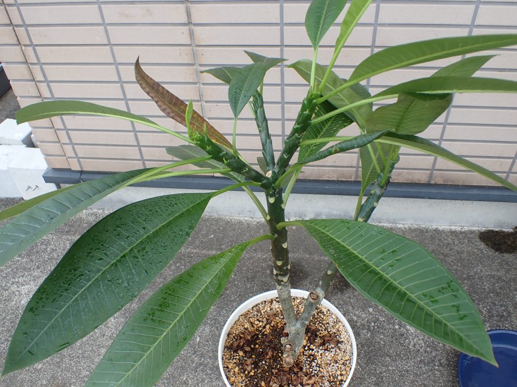 12月に綺麗な花を咲かせたプルメリア.