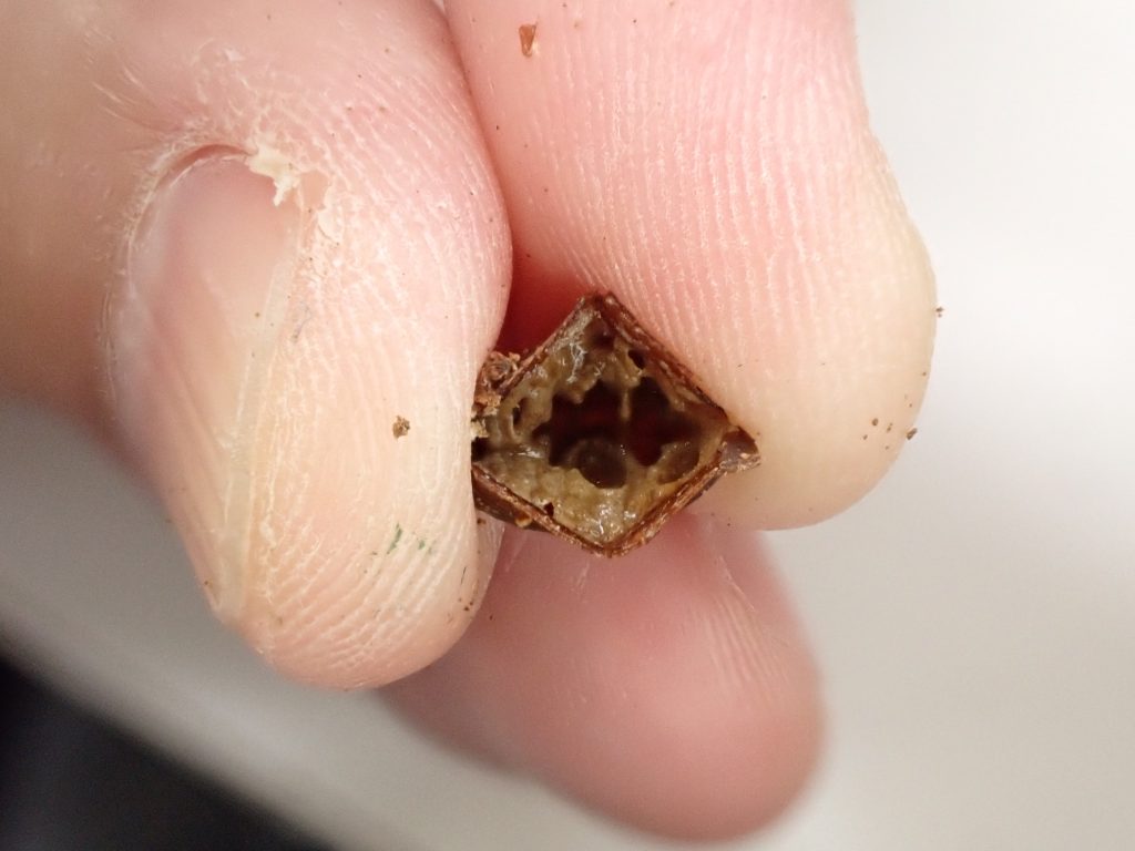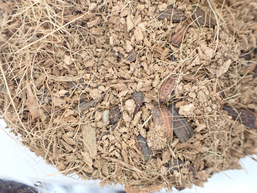 元はヤシガラなんですが,すくうとこんな状態でヤシガラは餌になっているようです.