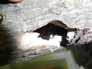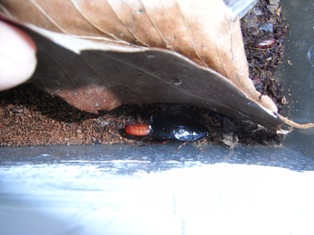 オガサワラゴキブリが卵鞘を覗かせていた.