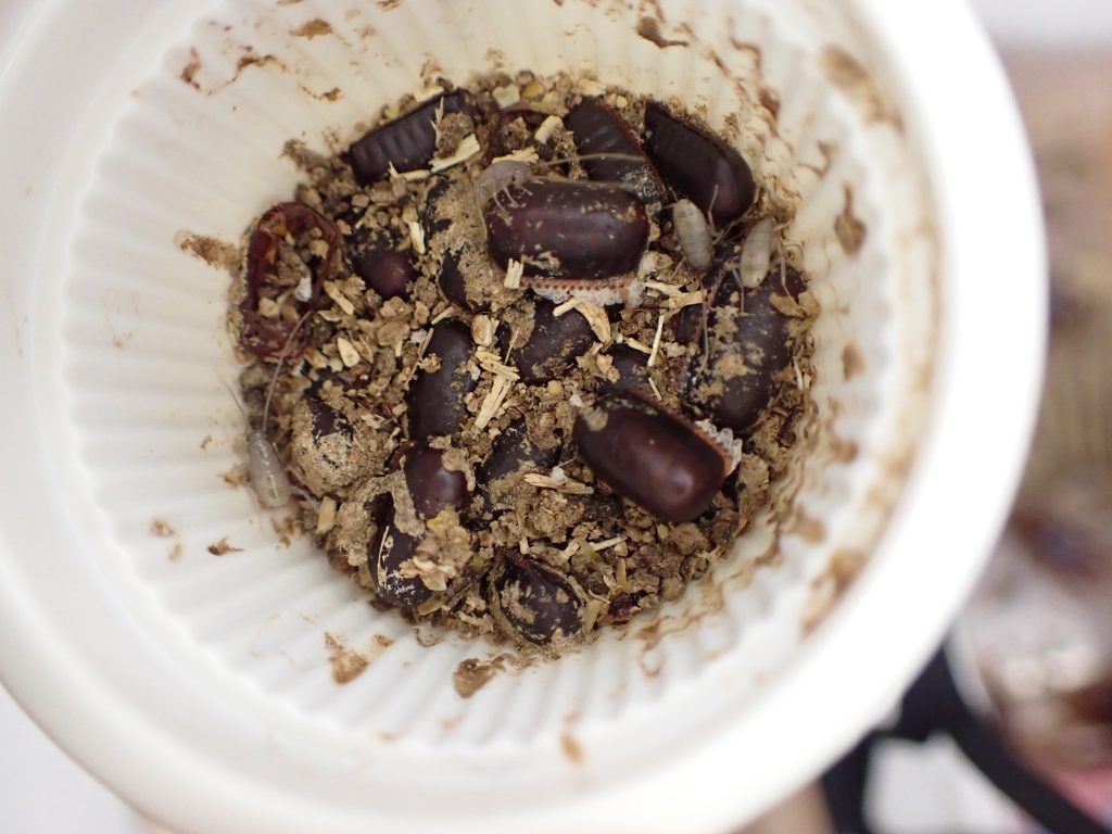 ワモンゴキブリの白眼♂×黒眼♀のF2