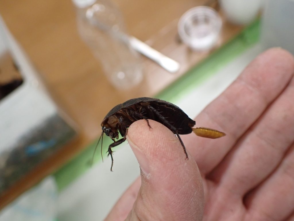 ムカシゴキブリ科の大型種は,このような光景になりやすいです.