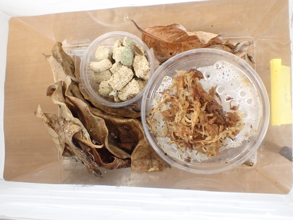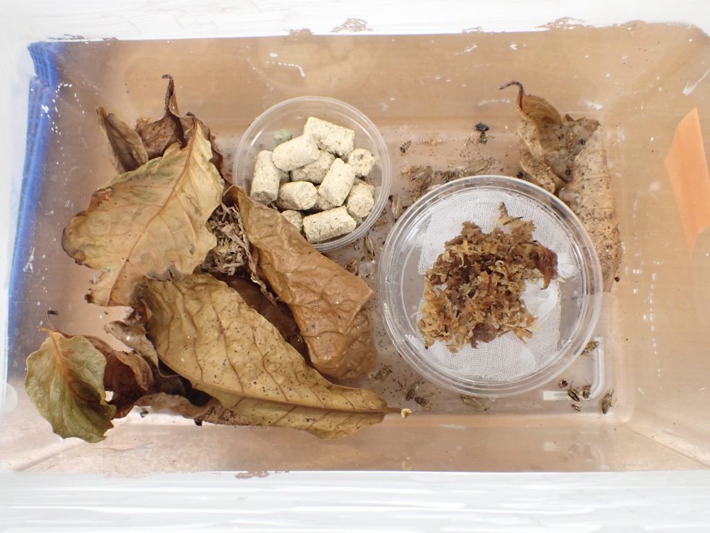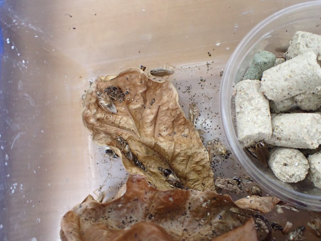 分かりにくいが,成虫もおり各齢の幼虫が混在している.