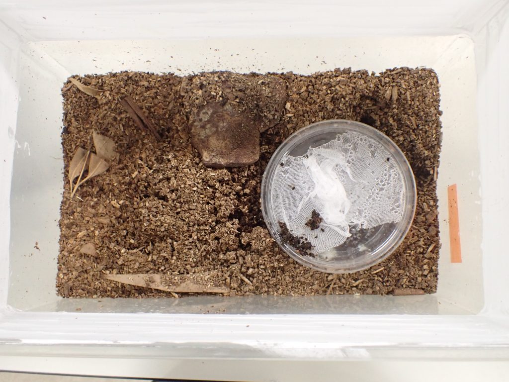 オオゴキブリ,クチキゴキブリそして本種しかり,潜って生活する種はケースの横からたまに姿を確認できるが,今ひとつ飼育感が少ないと思う.